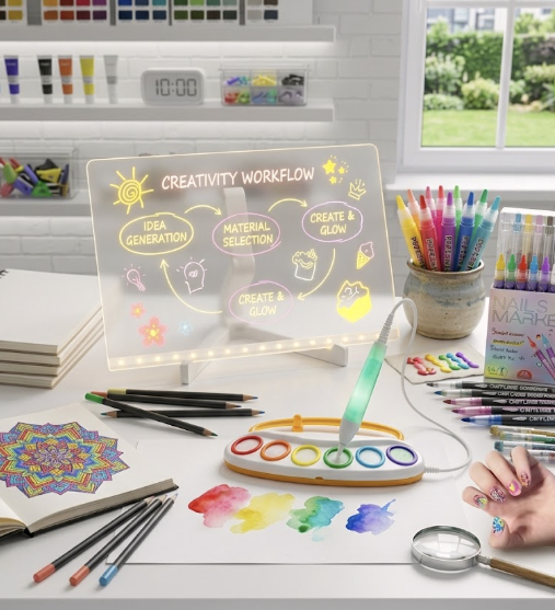 At LumiArt, we believe creativity should shine bright! Our SketchGlow Pad™ lets you draw, write, and create in vibrant neon colors—mess-free and full of fun.
